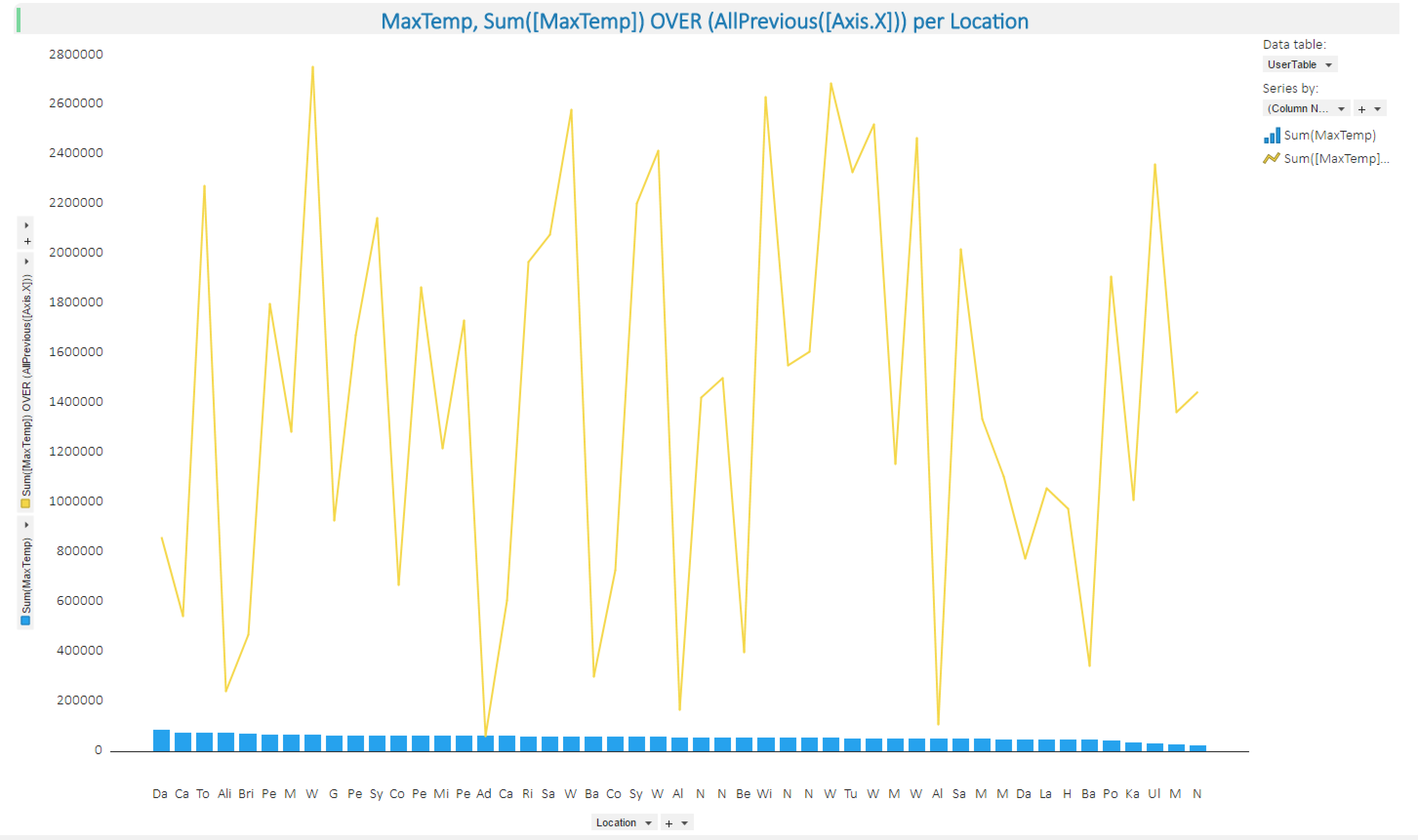 Link posted by Niklas is broken. I'm manually trying to create pareto chart using combination chart with Sum(Y1), cumulativeSum(Y1) as axis selectors & X axis as category variable. The problem is if sort my Xvariable, the bar graph gets sorted but the line chart is zigzag (not expected for cumulative sum). Attached screenshot for reference.