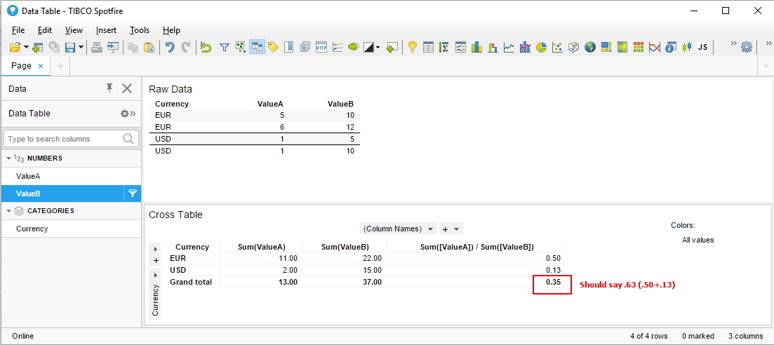 It's idiotic that the "grand total" not be the straight sum of data displayed! It renders non-nonsensical the grand totals of any non-linear aggregation!