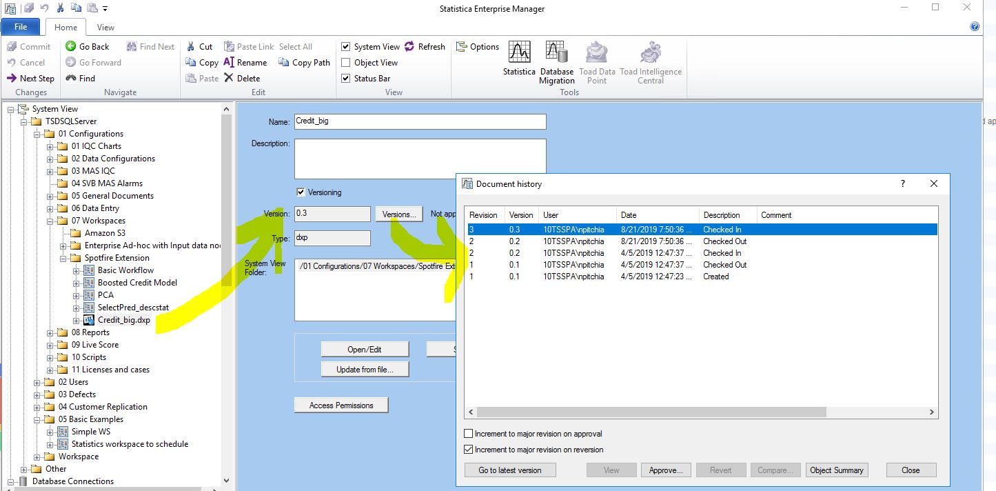 A user with Statistica Enterprise and Spotfire may deploy their dxp files to Statistica and that would version dxp files. See attached image