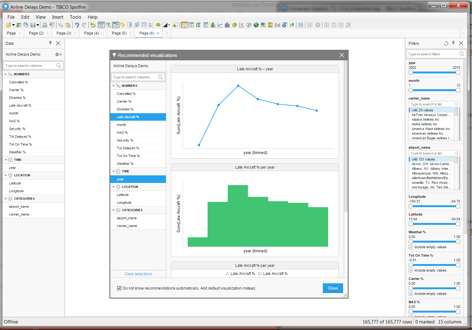 Filter panel, Data Panel and Recommendations Window all have similar, partially overlapping functionality. Sometimes all 3 are open. (See attached file.) All 3 show a list of the data columns. Filtering can be done from 2 of them. Etc ... This can waste valuable screen real estate, makes learning Spotfire more difficult and generates confusion about where to go for functionality not present in all 3. I propose that we add all recommendations / filter panel features to the Application Data Panel and eliminate the other two panels.