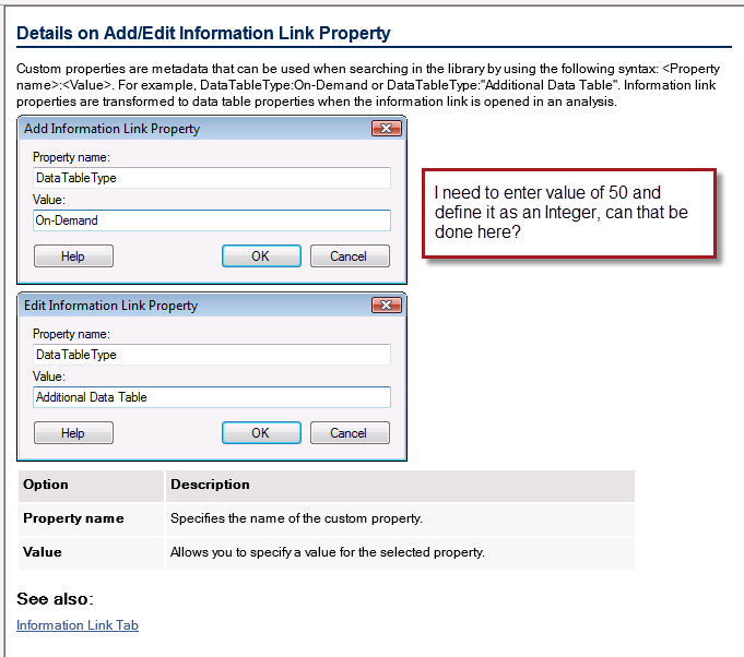 Define Data Type for Information Link Property