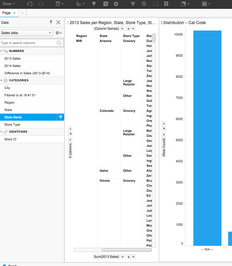 In a cross table with more vertical axes columns than will fit in the window, the horizontal scroll bar does appear, but moving it has no effect on the columns displayed. The horizontal scroll bar simply has no effect at all. It is not possible to scroll to the last columns in this cross table. They remain hidden and there is no way to see them. If the full cross table with a row hierarchy does not fit in the visualization area it should be possible to scroll to see the rest of it.