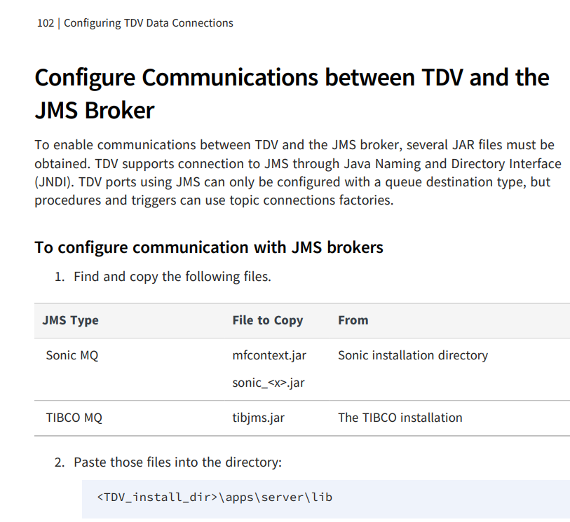Under "Configure Communications between TDV and the JMS Broker", we see the supported JMS types are Sonic MQ and TIBCO MQ only.