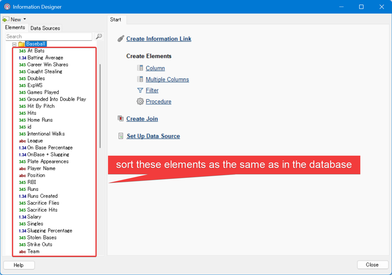 Our customer wants to keep the column elements being ordered as the same as in the database in information designer, in the panel on the left,