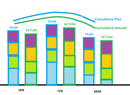 Customer wants to have stacked bars(by color) together with line in 1 combination chart, please implement this asap. Thanks.