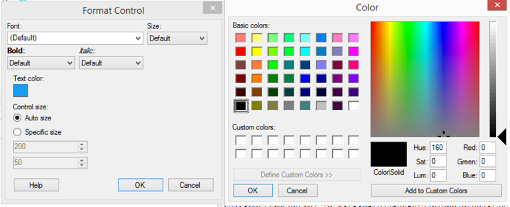 Pls see screenshot in TS-I-6184_(a).png. The blue chosen for the control's text color is not shown in the color picker when it is opened. There's no way to tell which color is used.