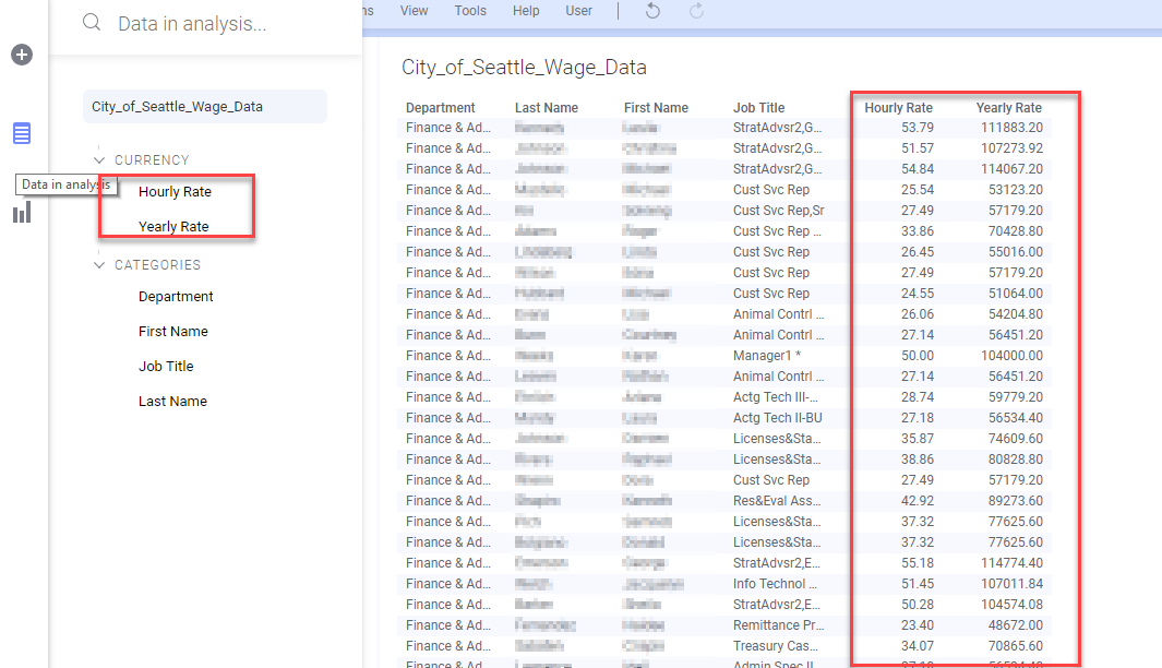 For instance, in the attached example, I have wage data showing "Hourly Rate" and "Yearly Rate". When I search "salary" I get no results, even though "Hourly Rate" and "Yearly Rate" are both categorized as "Currency". Even though these texts are not identical, searching for "salary" should at the very least pull up any data that is in the Currency categorization imho.