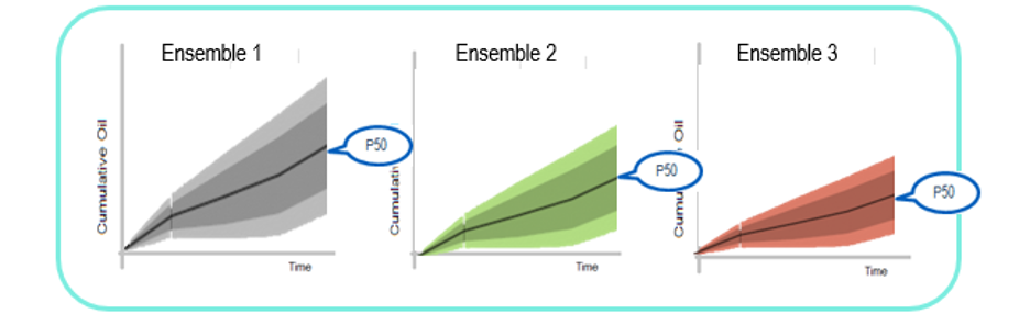 This is what is looks like in Spotfire; each solid line represents p10, p50 and p90.