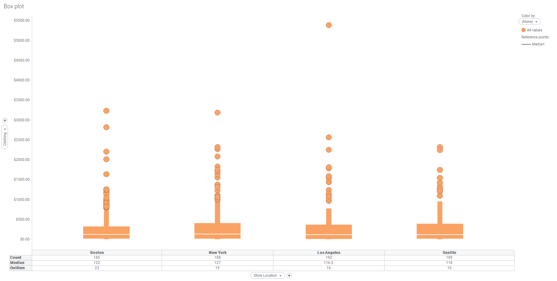 When adjusting the transparency of box plots (in Visualization Properties > Appearance), this should apply only to outlier points and not box itself. Transparency is useful for seeing when multiple points overlap. I'm less interested in making the boxes themselves transparent (unless distribution is also shown). When I have many overlapping points, I have to make chart very transparent, which allows me to see points better, but not boxes anymore. End up having to choose one or the other.