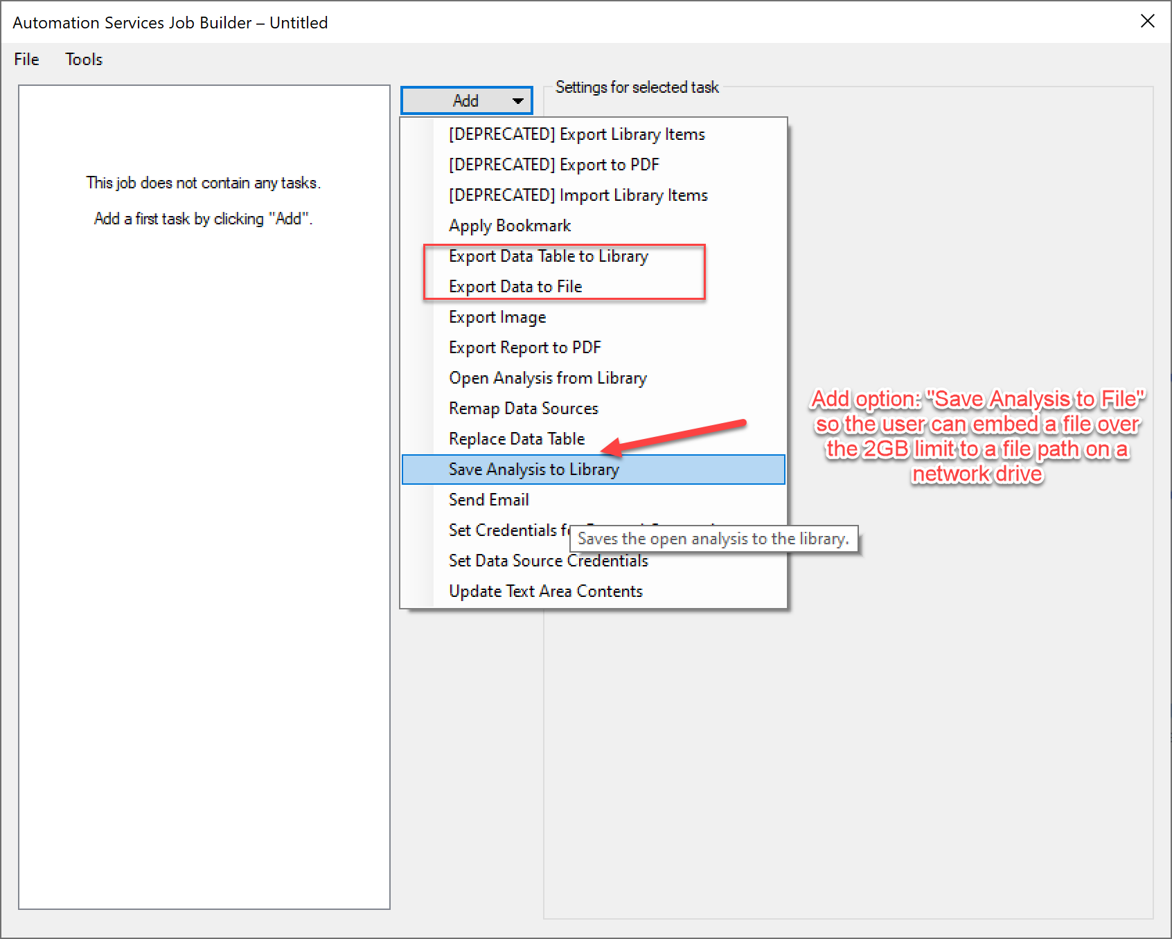 Would you still need "Save Analysis to File" task in Automation Jobs if there was no 2 GB size limitation in the Library due MS SQL Server? (i.e. using other database)