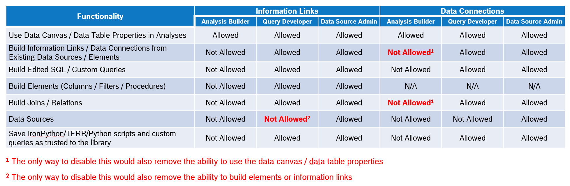 Currently it is not possible to configure users with these rights for both information links and data connections (see table attached). It would be great to have that possibility to avoid mistakes.