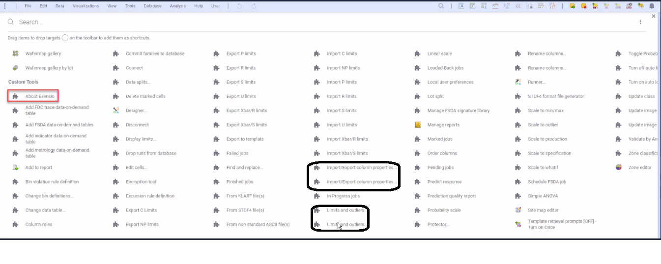 Attached is an example of the tool area that lists all tools in Spotfire.