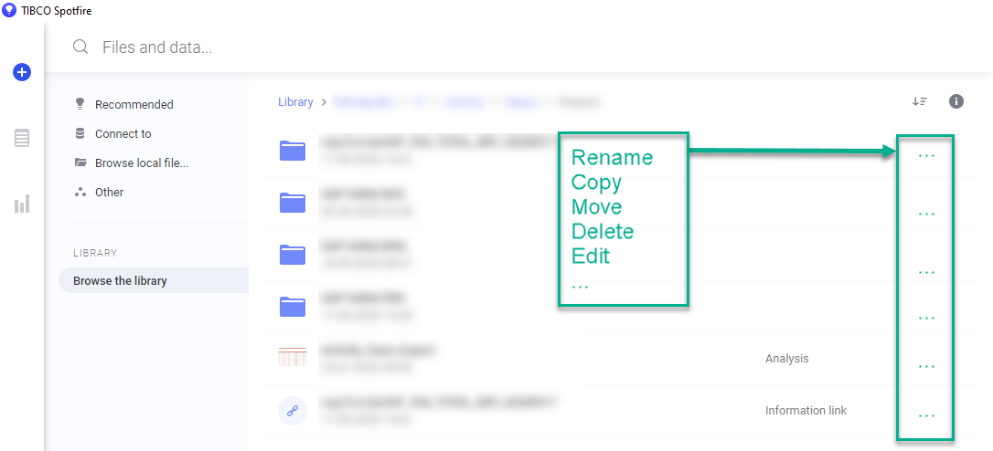 Spotfire Analyst - Add Library Administration features from "Files and data -> Browse the library"