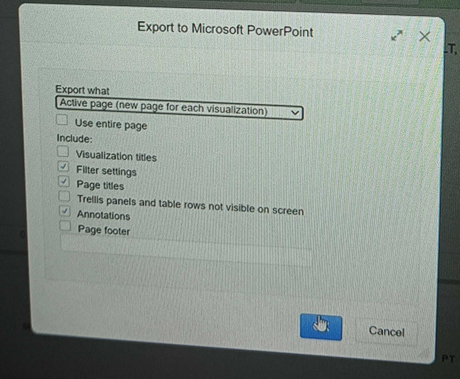 We have lot of text areas and multiple visuals on one page and if we use Active page option which is by default then texts areas, some legends are not being exported correctly and hence users are not happy with this export.
