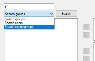 Set Folder Permissions drop down to 'Search users/groups' as the default