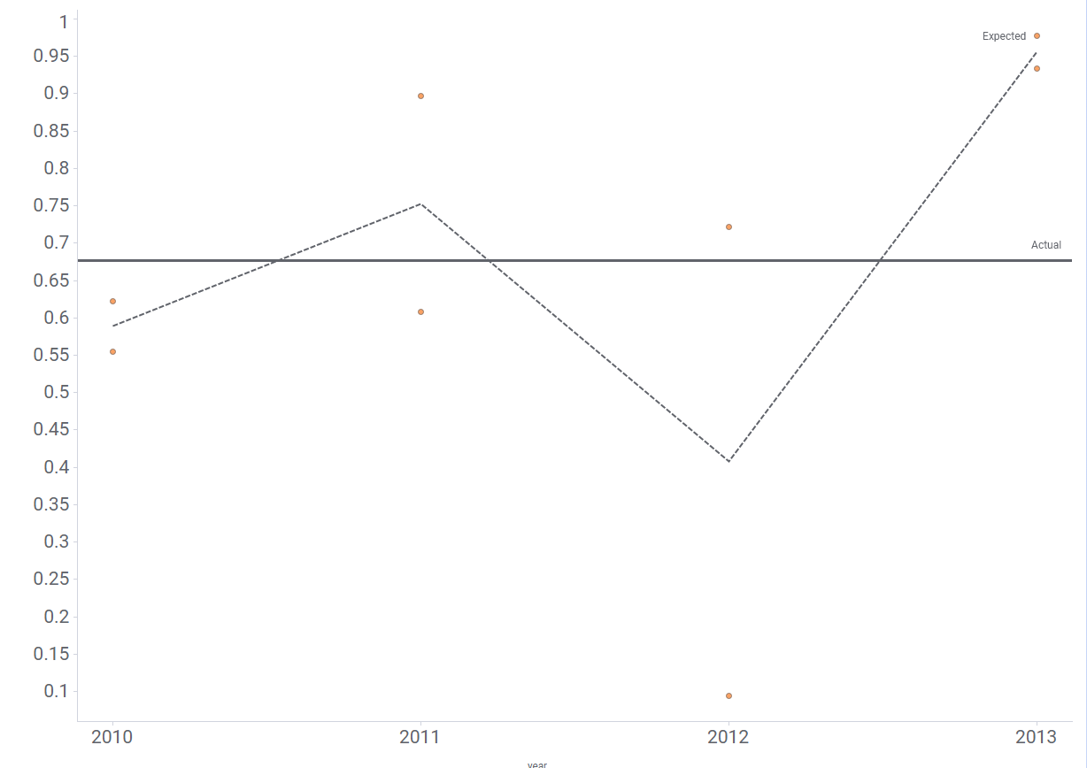 When adding an average horizontal line via Lines & Curves setting, the line is calculated over the whole data, and not per x-value.