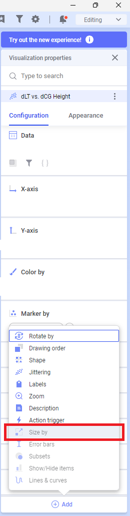The visualization authoring experience allows changing size by on multiple visualizations at once and sync this property between visualization. Learn more about the new visualization authoring experience and what's new in Spotfire 14.5 here.
