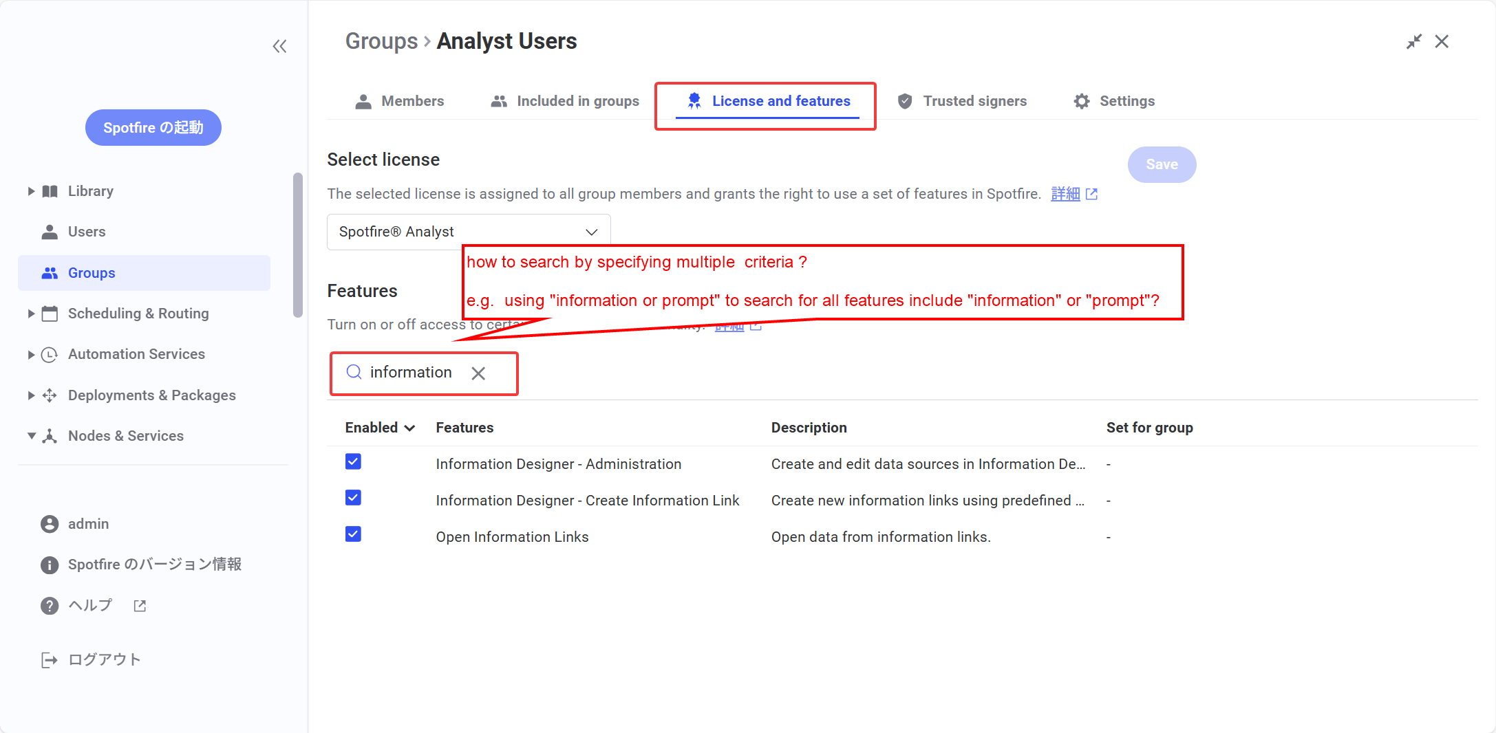 please allow to use AND / OR / wildcard to search for license features in "License and features" tab of "Groups" page